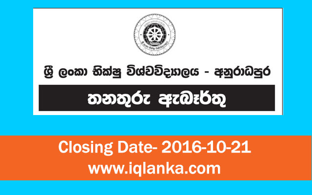 Vacancies - BHIKSU UNIVERSITY OF SRI LANKA - closing date 2016-10-28